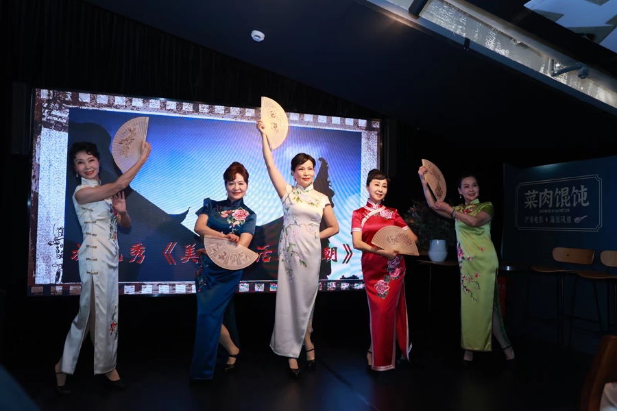 没有演职人员参与的公益放映,又是什么样的情景呢?面对记者的好奇,刘爱唯不慌不忙:“今天情况特殊,我们把平时放映前的表演项目放到了映后。”于是,在国泰电影院的餐厅内,一场小型的文艺汇演在麻油飘香中展开:有平均年龄72岁的银发佳丽,在旗袍秀中展现昂扬的面貌;有醇厚嗓音演唱的意大利歌曲,带来异域的风情;有深情的诗朗诵,以及激情澎湃的多人合唱。至此,答案分明:面向老年人的公益电影放映,往往又是一场老年人自己的文艺汇报演出。