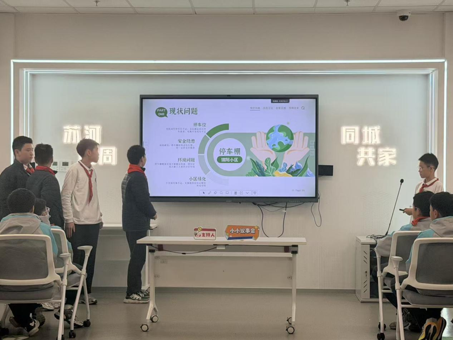 一次家校社研学活动,如何成为一堂行走的“大思政课”?2025年的最后一天,一场“锦阳社区停车棚焕新计划议事会”在周家桥街道党群服务中心举行。娄山中学六年级的学生们化身“社区小议事员”,与街道领导、学校教师、家长代表共同围绕社区停车棚改造,展开了一场模拟议事实践。学生们围绕真实社区议题,通过实地调研、设计方案、讨论修改、形成提案,最终走上议事舞台陈述方案、接受质询、参与表决,真正体验从发现问题到推动解决的完整过程。